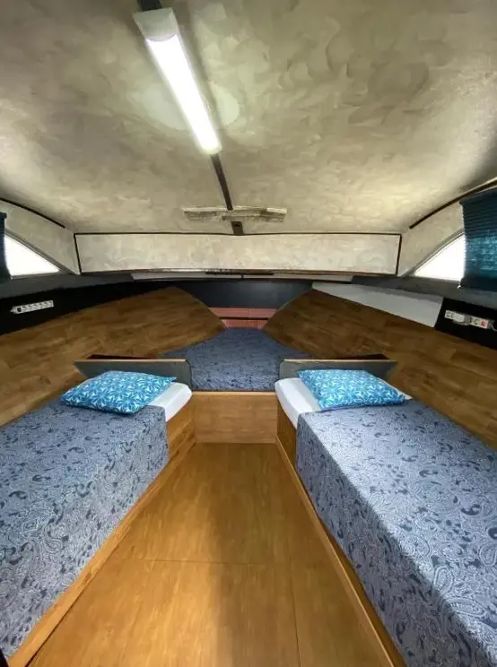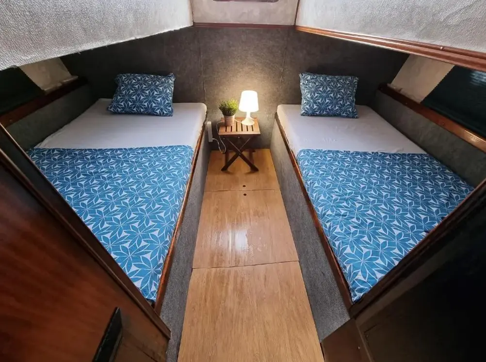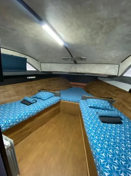 Es una experiencia diferente en una ubicación espectacular para conocer Gijón. Te proporciona la oportunidad de preparar una cena y un desayuno en un marco especial. Dormimos muy cómodos, el barco no se movió nada.